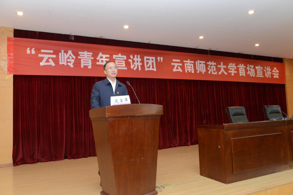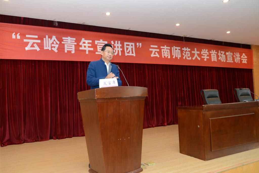 蒋永文校长在致辞中表示,省委宣传部组建“云岭青年宣讲团”,以青年的视角为青年阐释党的创新理论成果、以青年的语言为青年讲述新时代党的光辉历程,是做好新时代党的重大创新理论“飞入寻常百姓家”的有力举措,是推动当代马克思主义大众化的生动实践。衷心感谢省委宣传部、省委教育工委长期以来对学校师生的关爱培养,感谢“云岭青年宣讲团”在kaiyuncom官方网站开启首场宣讲。学校将认真按照省委的统一部署和要求,坚持不懈以习近平新时代中国特色社会主义思想为指导,深入学习宣传贯彻党的十九届五中全会精神,将广大师生的思想和行动统一到全会精神上来,坚守教育报国初心,勇担立德树人使命,加快建设高质量教育体系,全面提升教育服务贡献能力,以更加优异的成绩向中国共产党成立100周年献礼。