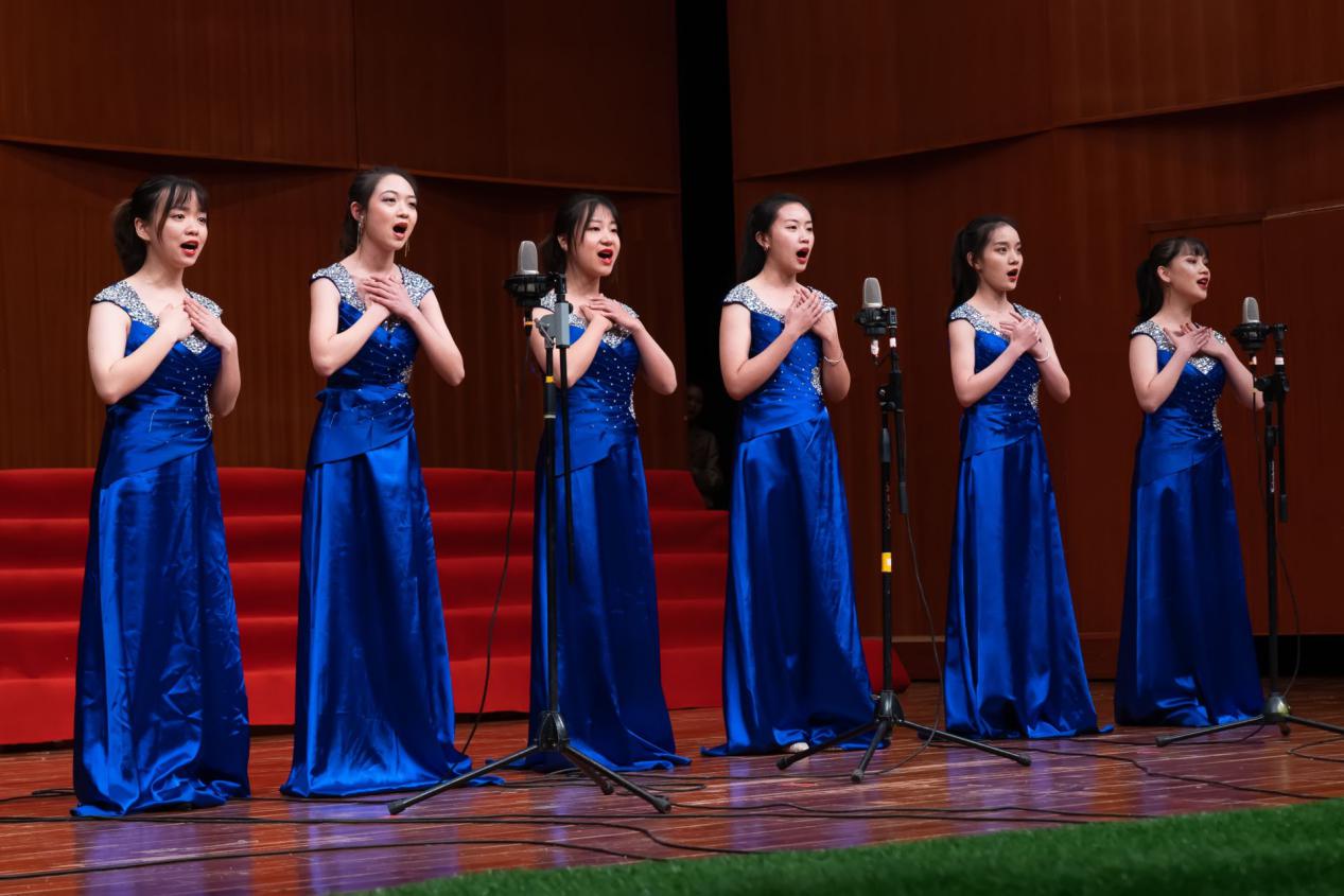 音乐舞蹈学院声乐课程思政结题音乐会是对kaiyun官网课程思政的一次有益探索。此次音乐会由课程团队主持人音乐舞蹈学院沈静(大)老师和项目成员李咏兰、郭佳云老师组织展演,共有“抗战歌曲、革命历史歌曲、弘扬传统文化歌曲、新时代歌曲、中国梦歌曲和爱国、爱家乡歌曲”六个部分27个节目组成。音乐会以“我和我的祖国”为主题,共45名同学参加,其中包括傈僳族、佤族、哈尼族、傣族、彝族、白族、壮族等多个少数民族同学,演出形式有大合唱、女声合唱、男声合唱、男女声对唱以及独唱等。