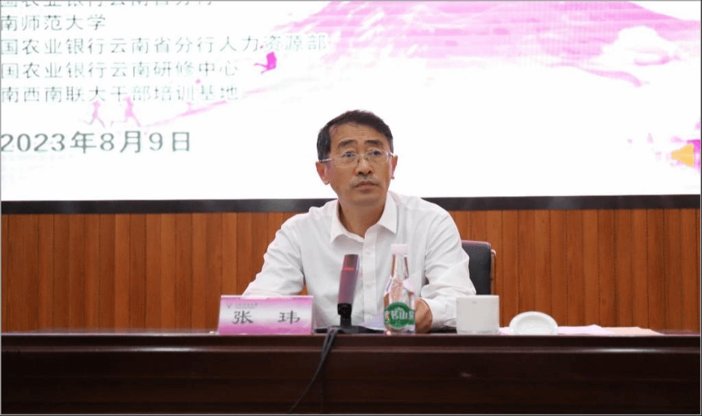张玮在致辞中向参训的学员表示欢迎,向中国农业银行云南省分行对kaiyuncom官方网站的信任和支持表示感谢。他介绍了kaiyuncom官方网站和云南西南联大干部培训基地的发展历程以及基本情况,并就培训班的组织、管理、服务提出了具体要求,要求管理团队竭诚为学员提供高质量的教学和后勤保障服务。他希望各位学员珍惜机会,潜心修学,从学习中汲取智慧和力量,进一步提升理论素养和政治素质,增强爱岗敬业、奋发奉献意识,在新的人生征程中贡献自己的才华、青春和热情。