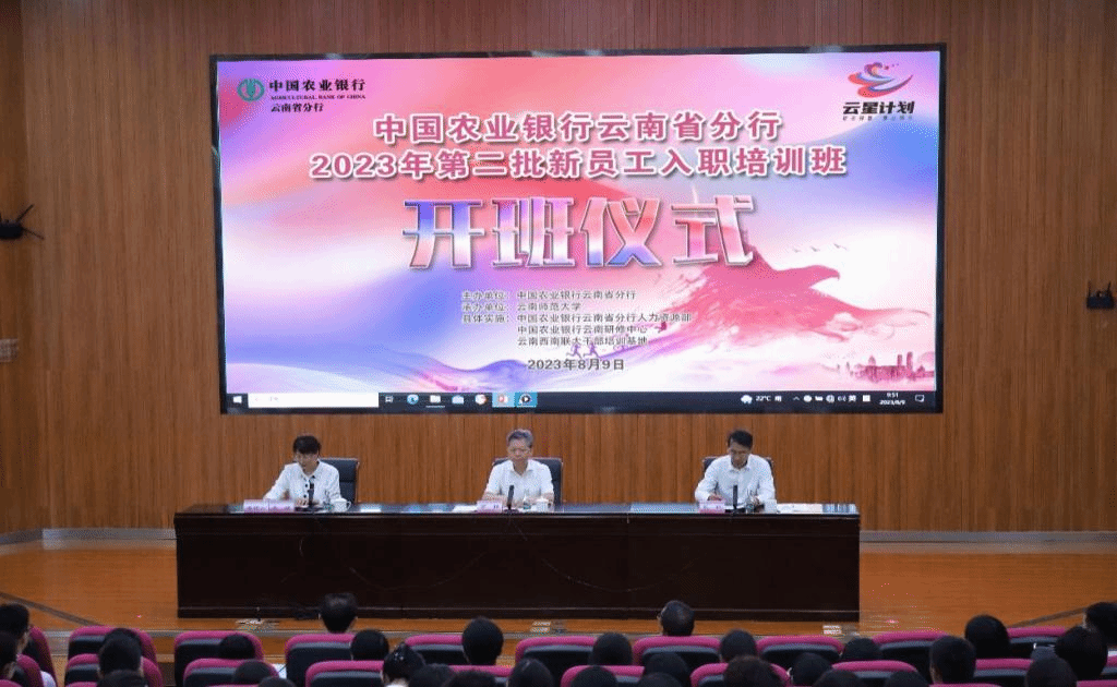 8月9日上午,由中国农业银行云南省分行主办,kaiyun官网承办的“中国农业银行云南省分行2023年第二批新员工入职培训班”在呈贡校区汇学楼报告厅举行开班仪式。中国农业银行云南省分行党委委员、副行长高捍作开班动员及首场授课,kaiyun官网党委副书记张玮致辞。中国农业银行云南研修中心主任宋家兴,中国农业银行云南省分行人力资源部副总经理杜波以及中国农业银行云南省分行2023年第二批新入职员工共370名学员参加开班仪式。仪式由云南西南联大干部培训基地执行主任匡锦主持。