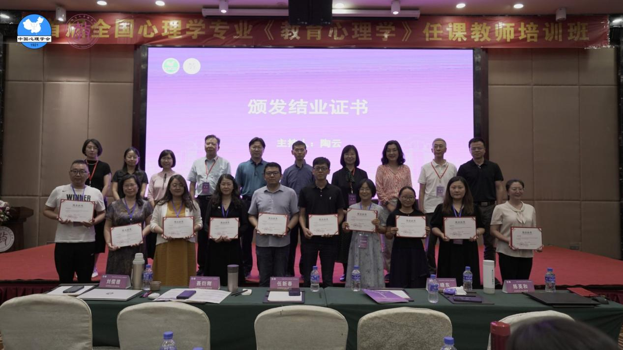 教育心理专业委员会主任与委员们和培训教师为学员代表颁发结业证书并合影留念。