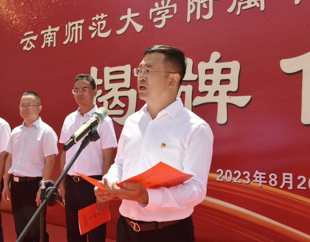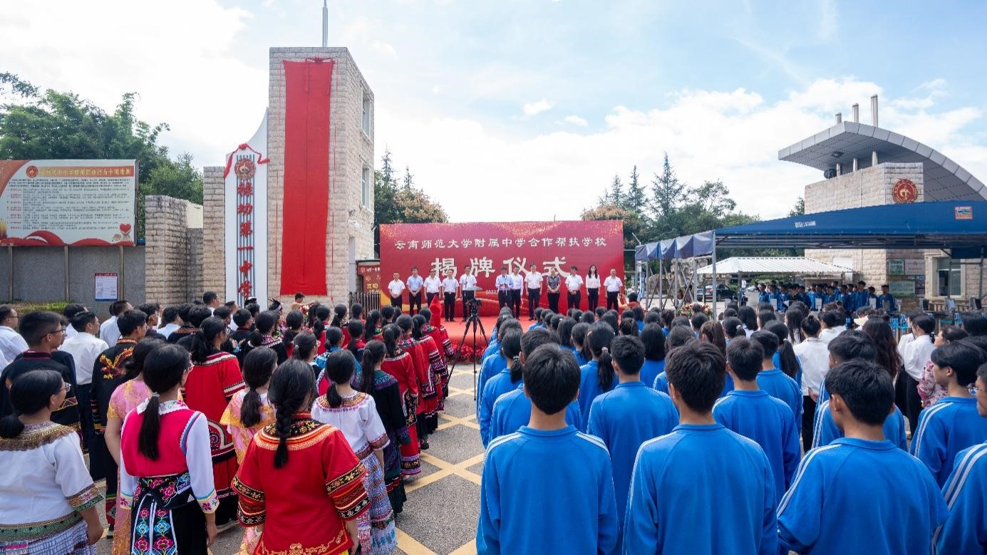 8月26日,kaiyuncom官方网站附属中学合作帮扶学校揭牌仪式在禄劝一中举行。kaiyuncom官方网站校长王德强,相关部门负责人,禄劝县委书记杨正山,县委副书记、县长张津华,县人大常委会主任李兴翠等市、县领导,市、县教体局等相关部门负责人,禄劝一中师生代表参加揭牌仪式。仪式由张津华主持。