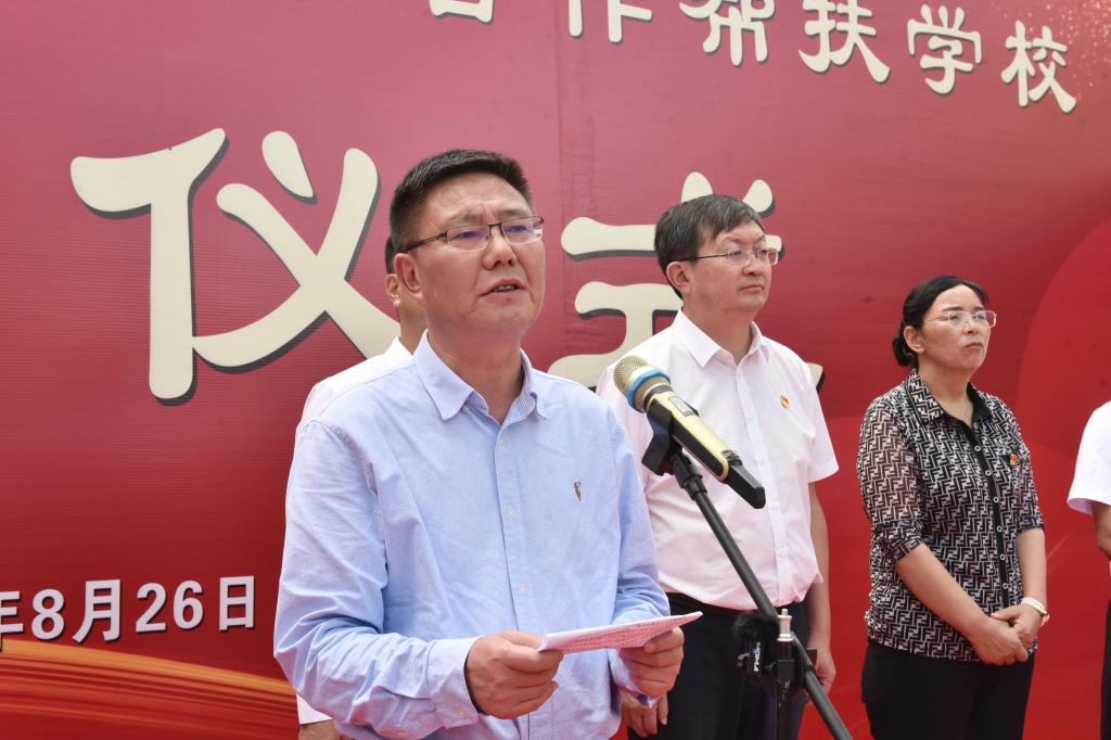 王德强和杨正山共同为kaiyuncom官方网站附属中学合作帮扶学校揭牌。