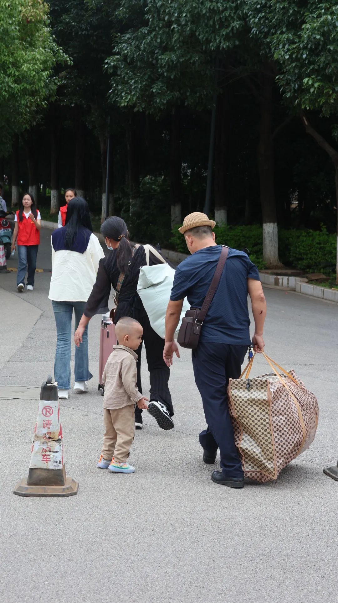 家人同行,一路叮咛,眼中藏不住的牵挂,饱含着浓浓的爱意……