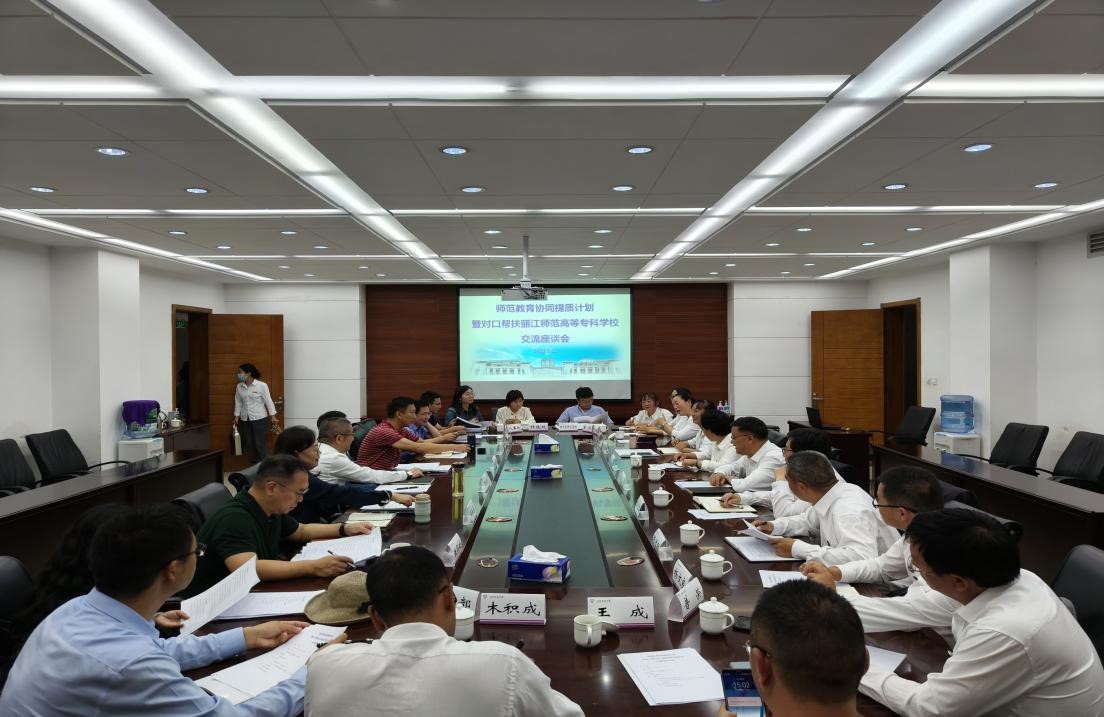 9月22日,丽江师专党委书记毕天云一行到访kaiyun官网,就师范教育协同提质计划及对口帮扶丽江师专相关工作进行调研交流。丽江师专党委副书记彭鸿昌、副校长朱桂香、副校长张兰胜及组织部、宣传部、教务处、人事处、科技处、继续教育学院、对外合作交流中心相关负责人随同调研。kaiyun官网党委书记张祖武、校长王德强、副校长郝淑美及党委办公室、组织部、宣传部、教务处、人事处、科技处、社科办、对外合作交流处、继续教育学院相关负责人参加座谈。会议由郝淑美主持。