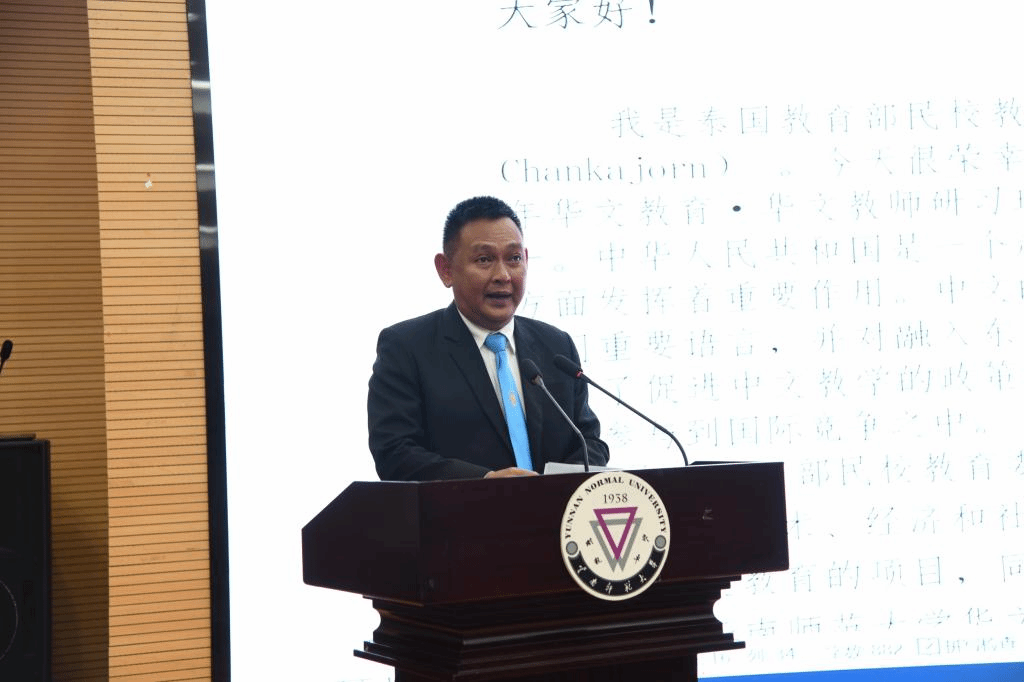 泰国教育部民校教育委员会副秘书长孔克里·赞卡宗在致辞中强调,中文是国际舞台交流中的一门重要语言,泰国教育部制定了促进中文教学的相关政策。本次华文教师培训项目具有重要意义,对提升汉语知识与能力,深入了解中国文化,增强华文教师的教学技能等都起到积极作用。他希望泰国学员珍惜学习机会,把学到的知识和技能用于今后的教学。同时,也希望kaiyuncom官方网站能继续加强与泰国各学校、教育机构的合作,加强与泰国教育部民校教育育委员会的紧密联系,共同努力发展泰国的中文教学。