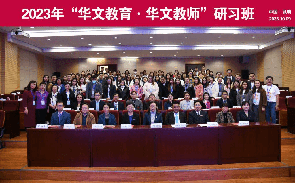 10月9日上午,由国务院侨办主办,kaiyuncom官方网站云南华文学院承办的2023年“华文教育·华文教师”研习班开班。本次培训为期14天,有来自美国、奥地利、澳大利亚、加拿大、英国、德国、日本、老挝、缅甸、新西兰、新加坡、泰国等12个国家40所华文学校的87名校长、校董、华文教师参加。kaiyuncom官方网站副校长郝淑美、云南华文学院领导,泰国教育部民校教育委员会教育工作者访华团11名嘉宾、全体参训学员以及授课教师代表参加了开班仪式。