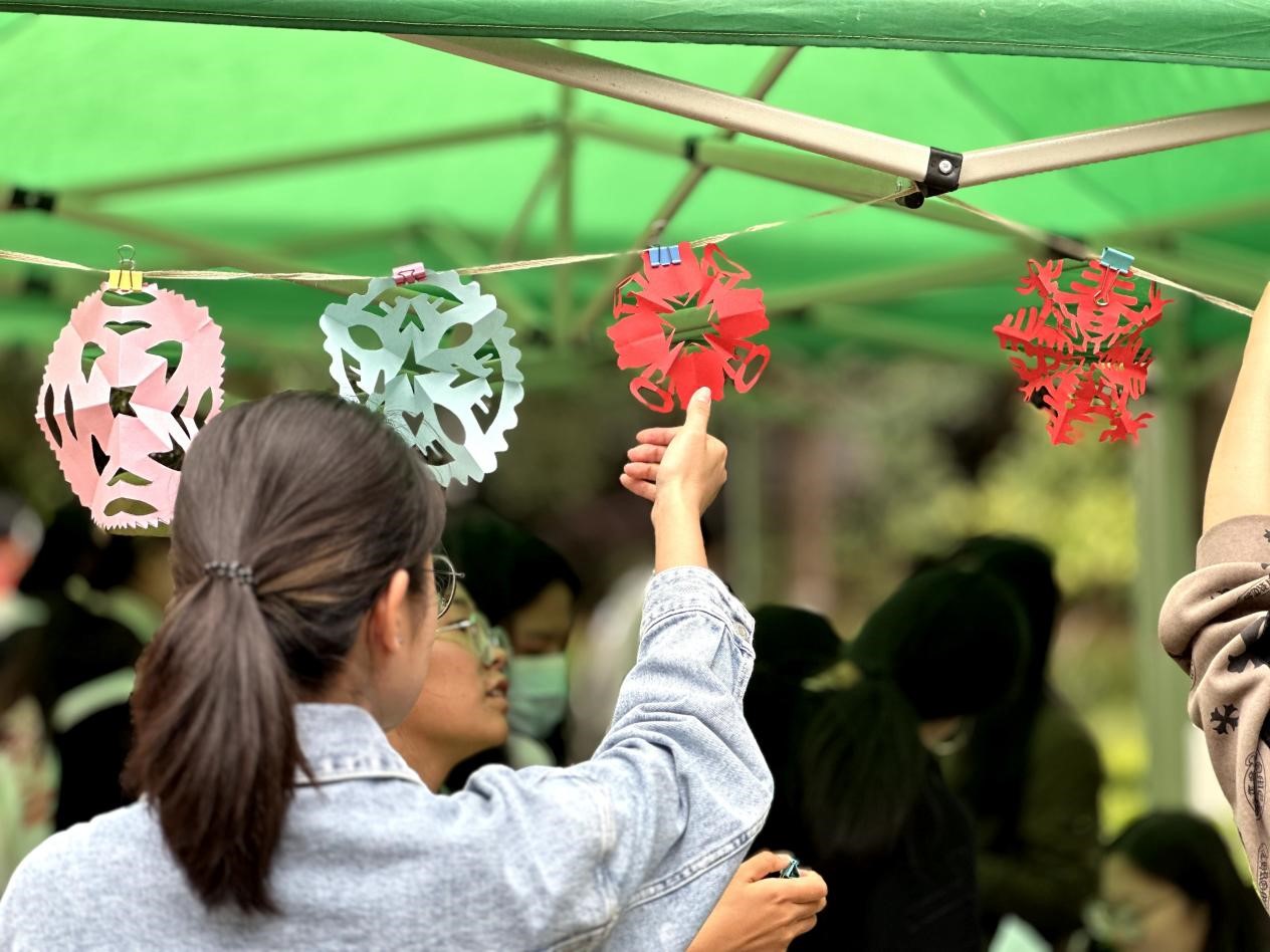 在“以劳健心”传统手工剪纸制作活动现场,一幅幅生动的剪纸作品承载着执剪同学内心的祝福与期盼。剪纸可以让人们感受到纯粹的手工艺术之美,同时也可以培养大学生积极向上的情感意志,缓解学习生活压力与焦虑,帮助大学生培养健康的身心素质。