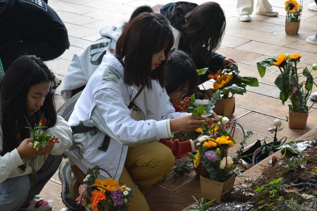 插花艺术是“无声的诗、立体的画”。在最受学生欢迎的“以美润心”园艺插花活动现场,同学们用心搭配,做出一捧捧自己满意的花束,在体验插花的过程中体会到美育丰富精神、温润心灵的作用。