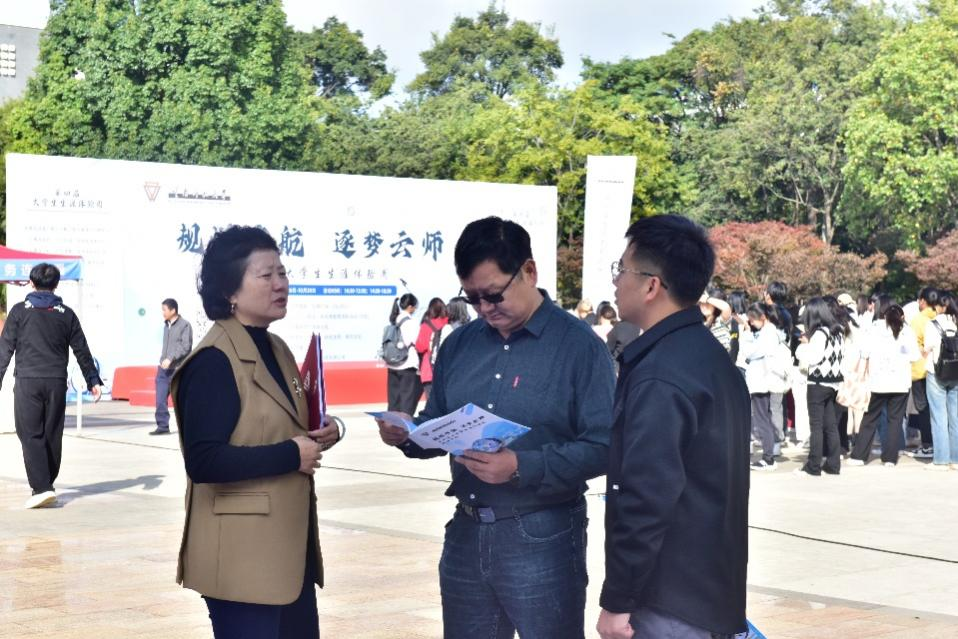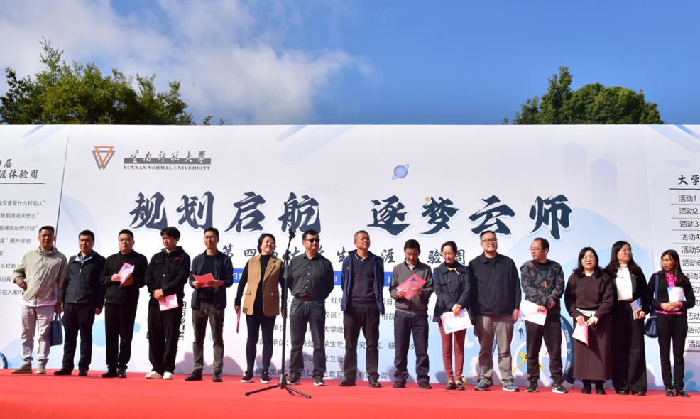 为丰富学校生涯教育形式,提升大学生制定职业生涯规划的有效性,引导大学生树立职业生涯发展的自主意识,10月16日上午,由就业处主办,教务处、学生处、研究生院、研究生处、校团委和保卫处协办的第四届大学生生涯体验周活动启动仪式在呈贡主校区红烛广场举行,副校长甘健侯,相关职能部门负责人,部分学院党委副书记及300余名师生代表参加了启动仪式。启动仪式由创新创业学院办公室副主任白宇主持。