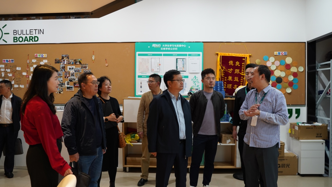 甘健侯、陈正权一行首先实地参观调研了新东方教育科技集团云南4家分支机构(昆明前途、云南国际教育培训中心、大学事业部云南中心和云南新东方教育培训学校有限公司),深入了解新东方教育科技集团在新教改后的教育转型和人才需求情况。