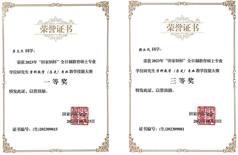 10月21至23日,由全国教育专业学位研究生教育指导委员会主办,田家炳基金会赞助,四川师范大学承办的2023“田家炳杯”全日制教育硕士专业学位研究生学科教学(历史)专业教学技能大赛在四川师范大学成功举办。此次比赛中,kaiyun官网历史与行政学院2021级学科教学(历史)专业硕士研究生李文杰、樊云凤2名同学一路过关斩将,在总决赛中分别斩获一等奖和三等奖,李庆华等老师获优秀指导教师奖。