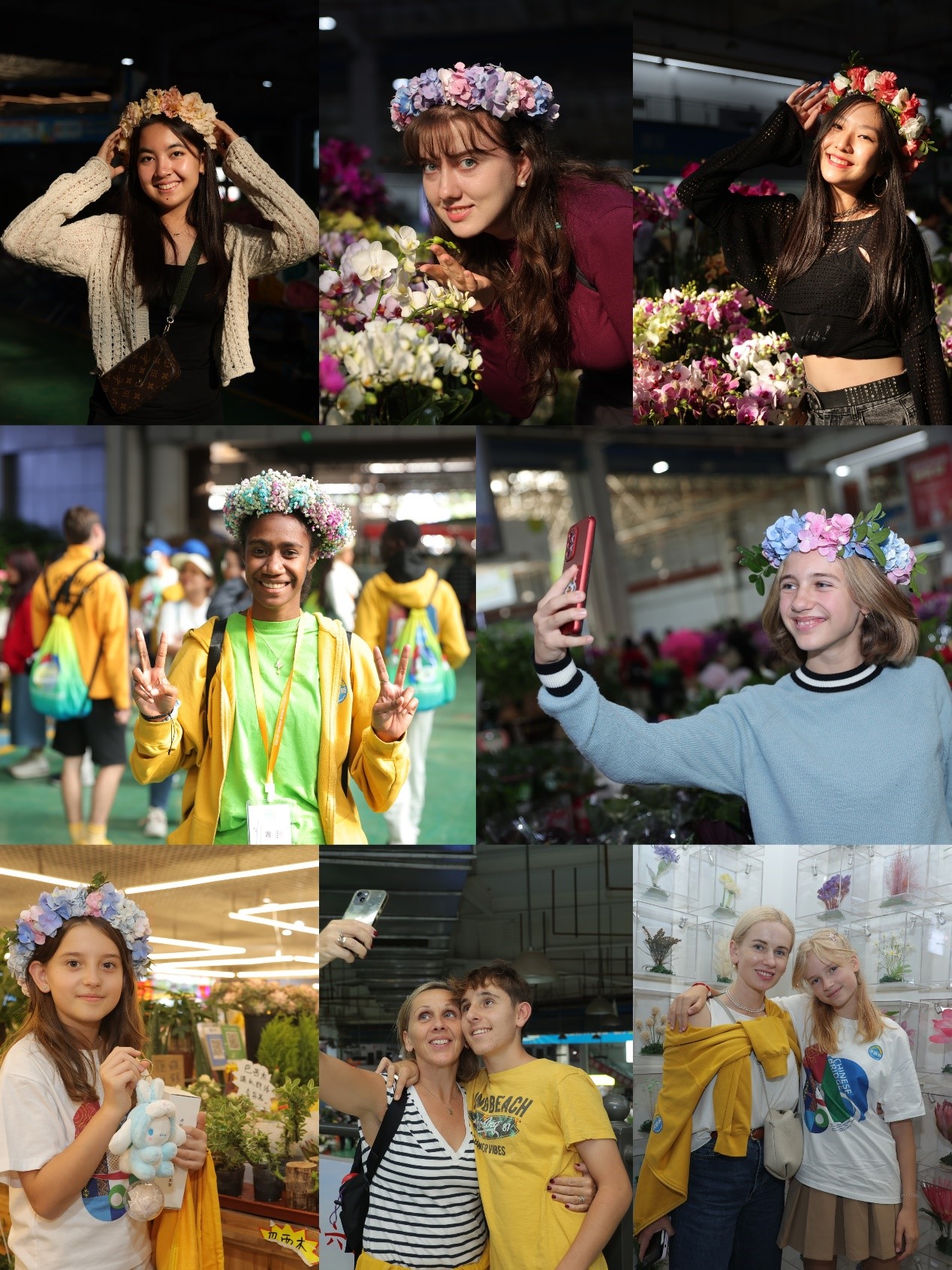 邂逅花市,相遇美好。来自南非的小朋友凯文说:“花是世界上最美好的事物,我喜欢太阳花,因为它永远向着太阳生长,希望我以后也能阳光开朗,做一个像花一样漂亮的女孩。” 来自英国小女孩麦亚表示:“我很喜欢这个花市,这里有各种各样的鲜花,我买了花环和玉石做的手链,我会把它们带回家,它们保存着我来到中国的记忆,也是我和中国的联系。”