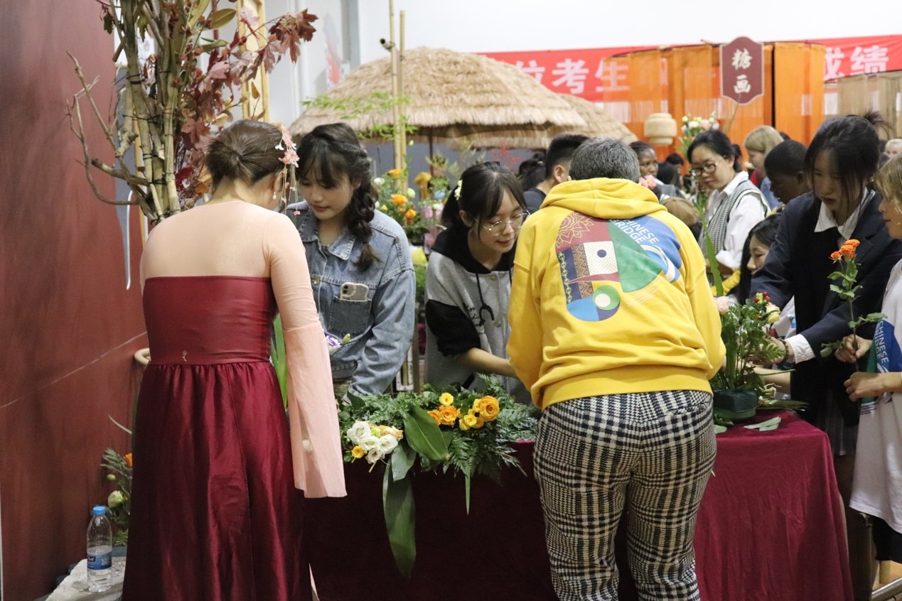 10月26日晚,云南师大国际汉语教育学院汉语为桥俱乐部在呈贡校区东区体育馆为来自97个国家的汉语桥选手精心准备了一场文化盛宴——团扇、插花、汉服、书法、射艺、投壶等多种中华优秀传统文化,供选手们体验、观赏,选手们纷纷参与其中,沉浸体验中国传统文化的独特魅力。