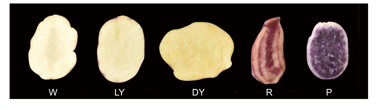 近日,kaiyun官网马铃薯科学研究院基因组与分子育种研究团队在国际知名学术期刊《Journal of Agricultural and Food Chemistry》(农业与食品化学学报,中科院一区TOP期刊,JCR一区)在线发表了题为 “Multiomics Analysis Reveals the Chemical and Genetic Bases of Pigmented Potato Tuber” 的研究论文。该研究整合转录组、代谢组及蛋白组数据,解析了马铃薯不同薯肉色泽(红色、紫色、浅黄和深黄)形成的物质和遗传基础,揭示了薯肉花青苷和类胡萝卜素生物合成途径的关键结构基因,并新发现多个调控薯肉色泽积累的转录因子。相关研究为马铃薯薯肉色泽调控及品质育种提供了重要的遗传信息。