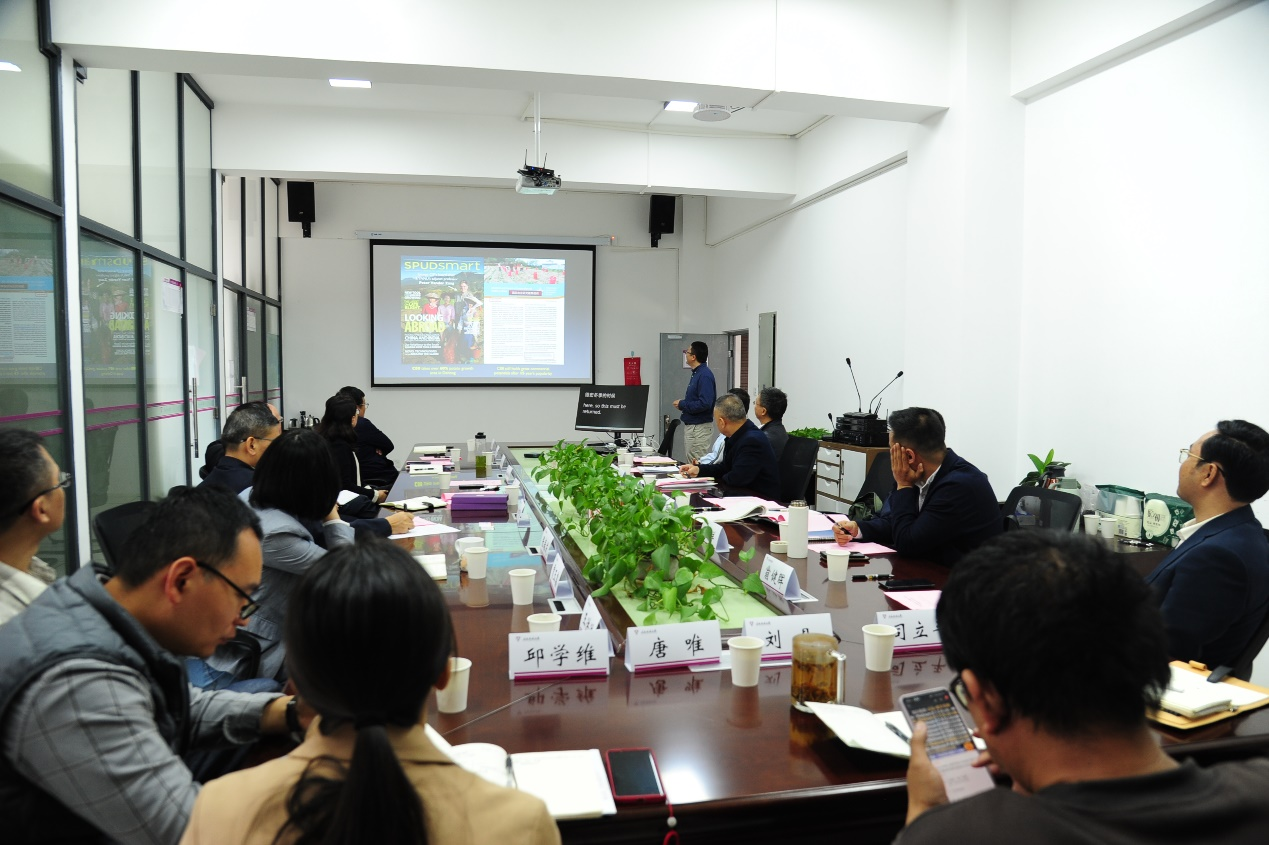 马铃薯科学研究院院长尚轶介绍了学院科学研究进展,副院长李灿辉、主任Simon Heck等就双方建立合作机制、种质资源创新、遗传育种、青枯病防治等进行了广泛深入交流,共同为全球粮食安全和农业可持续发展做出贡献。