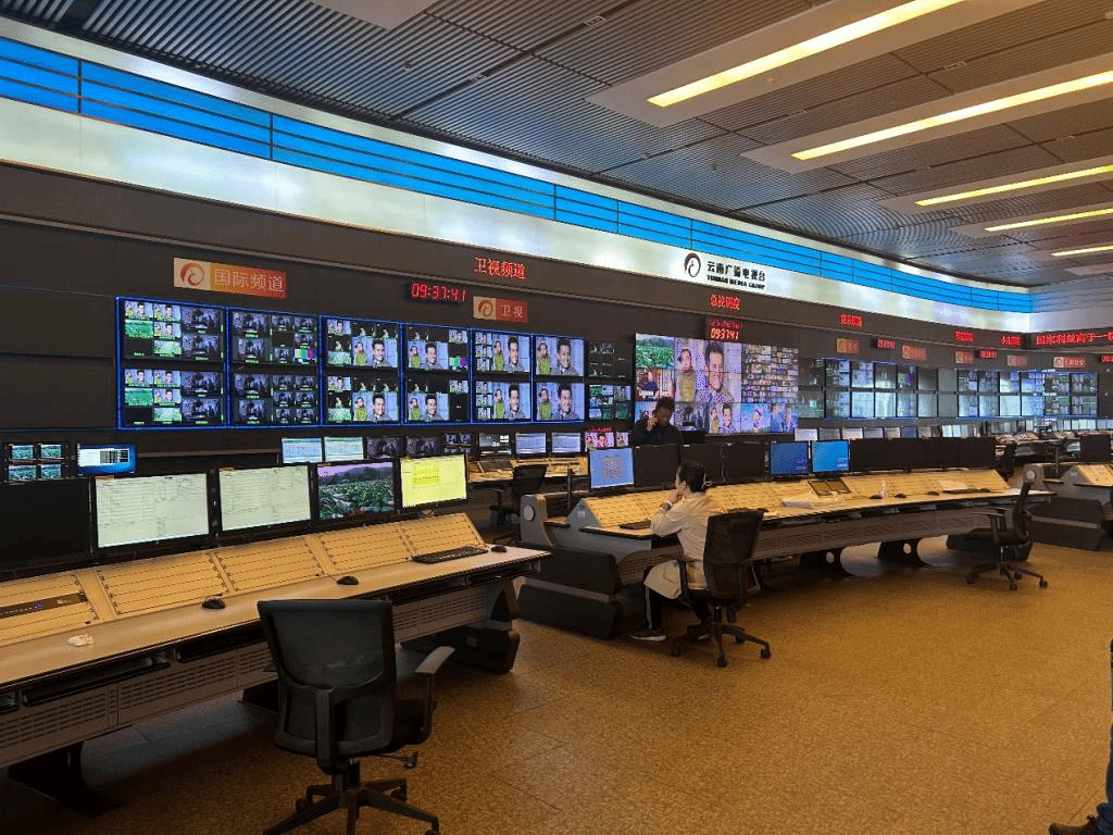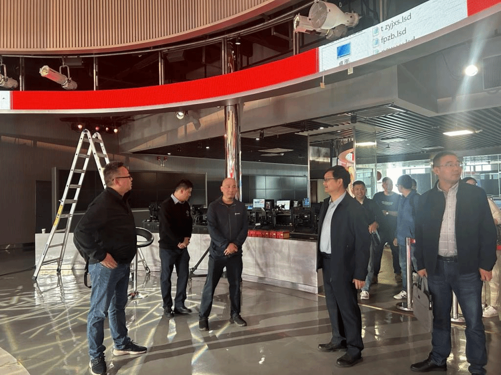 在电视台新媒体中心主任尹凡的带领下,调研组参观了《云南新闻》演播室、播控机房、杜比放映厅以及融媒体指挥中心,全面了解电视台核心工作业务和先进技术设施。