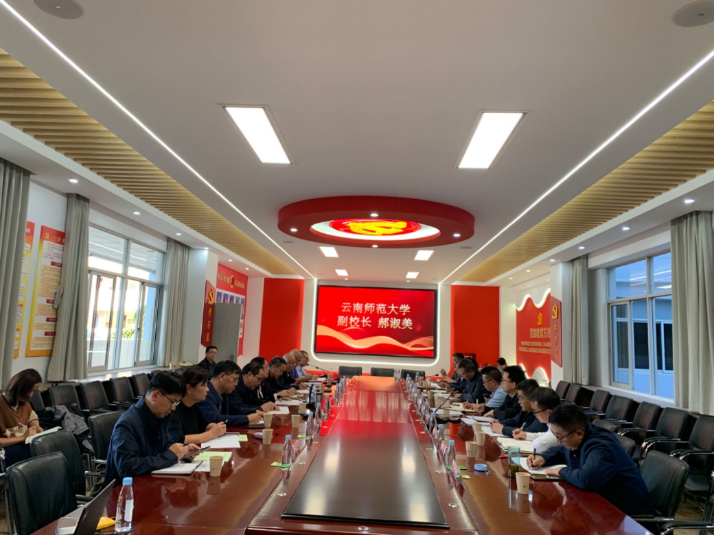 11月3日下午,郝淑美副校长调研云南师大附中并在附中高新校区主持召开学校县中托管和教育深化合作工作座谈会。基教集团办公室主要负责人,附中班子成员,梁河一中、武定一中、昭阳一中、迪庆藏文中学、怒江民中、禄劝一中、鹤庆一中、易门一中、附中呈贡学校、附中西山学校主要负责人参加座谈会。