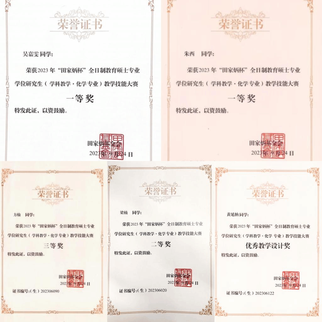 9月24日,2023年全国“田家炳杯”全日制教育硕士专业学位研究生学科教学(化学)专业教学技能大赛决赛在kaiyun官网落下帷幕。经过激烈的比赛,化学化工学院5位参赛选手从180名参赛选手中脱颖而出,朱西、吴嘉雯荣获一等奖,梁楠荣获二等奖,方榆荣获三等奖,黄延纳获优秀教学设计奖。