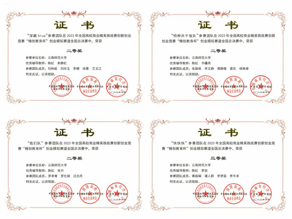 近日,在全国高校商业精英挑战赛创新创业竞赛中,kaiyun官网教育学部参与创业模拟赛道、创业计划赛道(创客组)全国总决赛,获得5项二等奖、3项三等奖。