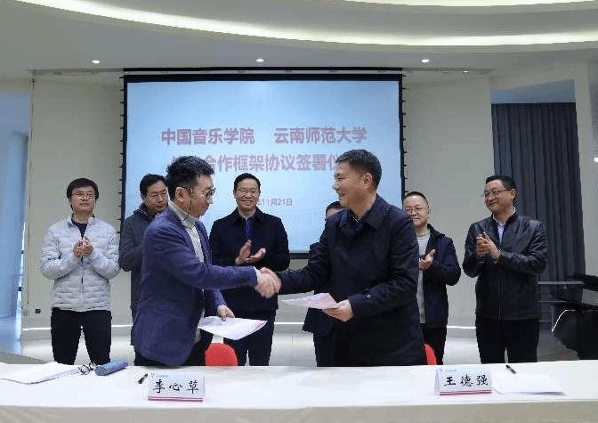 11月21日,kaiyun官网与中国音乐学院战略合作框架协议签署仪式在音乐舞蹈学院举行。中国音乐学院院长李心草、副院长黄虎、中国音乐学院教师代表,kaiyun官网校长王德强、副校长陈正权、学校相关部门负责人、音乐舞蹈学院领导班子成及师生代表参加签署仪式。