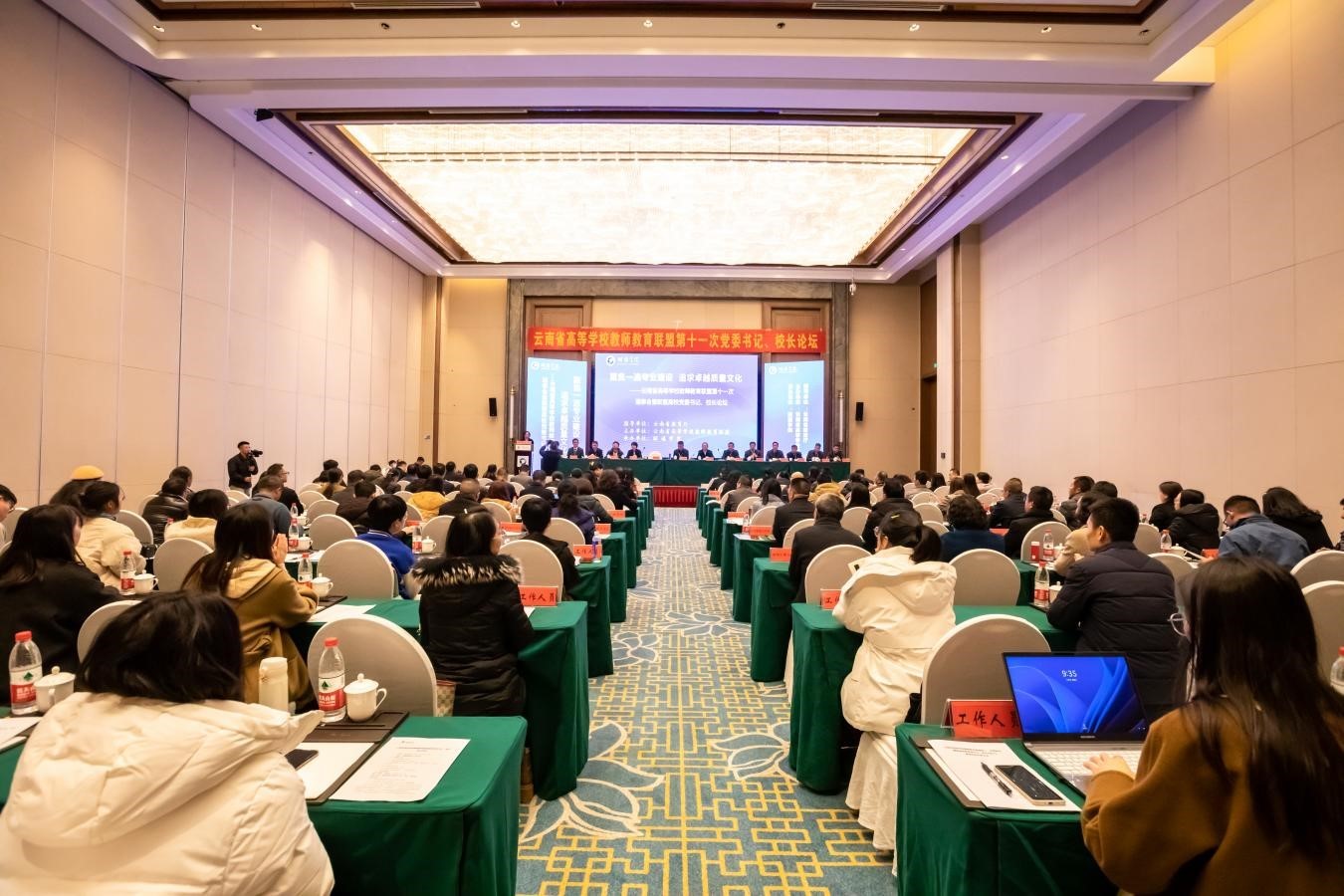 12月6日上午,联盟高校党委书记、校长论坛在昭通学院举行。云南省教育厅高等教育处,联盟各高校党委书记、校长以及教务处代表,高等教育出版社代表,14所联盟高校与昭通学院副处级以上干部等100余人参加了论坛。论坛以“聚焦一流专业建设 追求卓越质量文化”为主题,分两个阶段进行。第一阶段为论坛开幕式,由昭通学院校长李若青主持;第二阶段为论坛,由kaiyuncom官方网站副校长陈正权主持。
