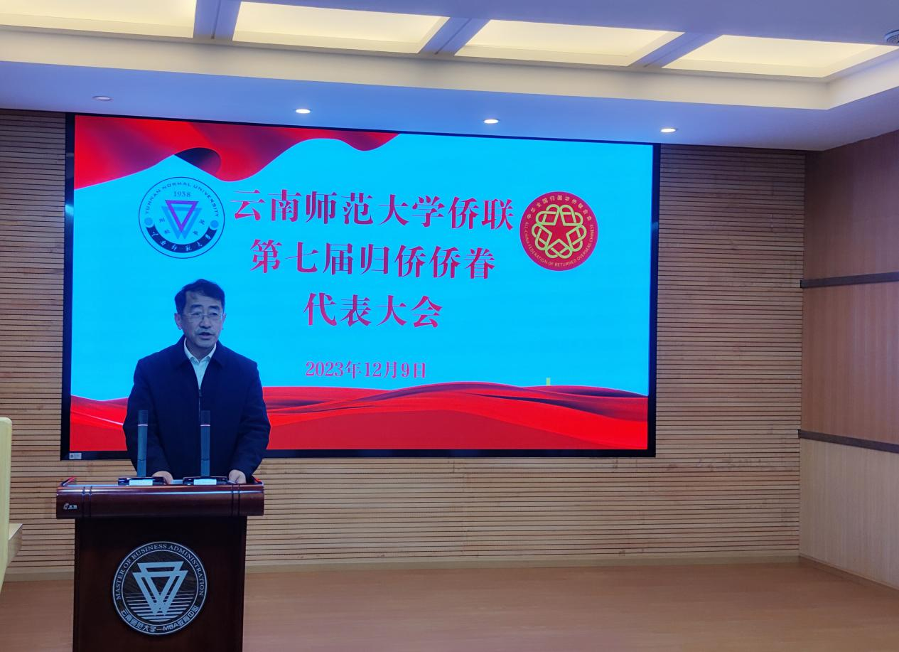 张玮代表学校党委对大会顺利召开表示祝贺,并对学校侨联的建设发展提出四点希望:一是要坚持以习近平新时代中国特色社会主义思想为指导,强化理论武装,不断提高政治站位,坚定拥护“两个确立”,坚决做到“两个维护”,在省侨联和学校党委的领导下,加强学校侨联组织自身建设,努力把侨联建成一个团结奋进的温馨家园;二是继续支持学校改革建设发展,要主动发挥自身优势,广泛汇集侨心侨智,切实增强参政议政能力,为学校的高质量发展建言献策;三是新一届领导班子要结合学校实际,不断增强学校侨联凝聚力,拓展教育、科技、文化的交流合作,做大做强做亮学校侨联的服务品牌;四是全校广大归侨、侨眷要加强学习,展示自身优势,讲好中国故事、云南故事,传播云师声音,树立和维护学校的良好形象,搭建平台,拓展渠道,助力提升学校国际合作与交流和国际化办学水平。