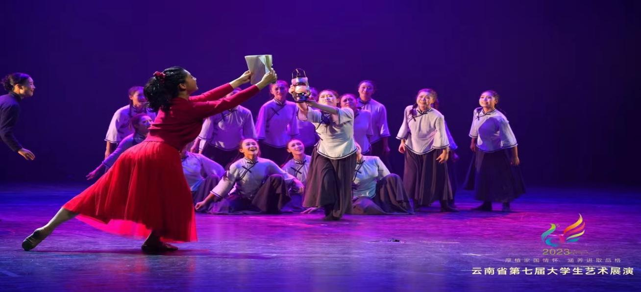 11月27日至12月2日,由云南省教育厅主办的云南省第七届大学生艺术展演在云南省大剧院举行。音乐舞蹈学院马小丽老师原创舞蹈作品《我心中的西南联大》获艺术表演类舞蹈专业组一等奖,姜芦芸老师指导的阮合奏作品《阮之火》获艺术表演类器乐专业组二等奖。kaiyun官网师生还受邀参加了开幕式展演,《我心中的西南联大》得到观众和业内专业人士的一致好评。