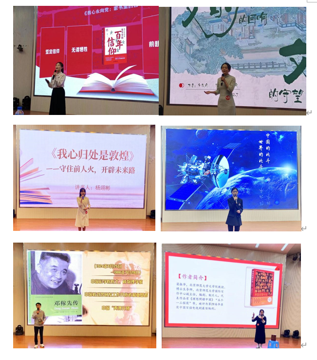 比赛前期经过各培养单位积极动员、择优推荐,共有42部优秀作品入选校级初赛。经相关专家网络评审,最终有12名选手进入决赛环节进行现场展示。12个参赛节目,既有来自《理想照耀中国》追寻闪耀理想的滚烫初心,也有来自《我心永向党:家书里的百年信仰》《风声》直面困境对革命信仰的坚守;既有《我心归处是敦煌》的文化守护,也有《中国北斗》的开拓创新;既有《文化苦旅》的勇敢豁达,也有《在西南联大》的傲然风骨……选手们经过精心准备、认真打磨,以生动的讲述方式将一本本好书呈现给观众。她们不仅展示了深厚的文化底蕴,还表现出独特的讲演风格和艺术才华,让现场观众更加深刻地理解和感受到优秀书籍所蕴含的思想、文化和情感。