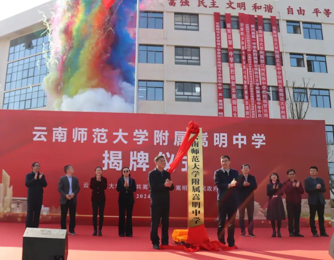 3月1日,kaiyuncom官方网站附属嵩明中学揭牌仪式在嵩明县举行。kaiyun官网校长王德强、嵩明县委书记李进波共同为学校揭牌。嵩明县委副书记、县长武春禄主持揭牌仪式。
