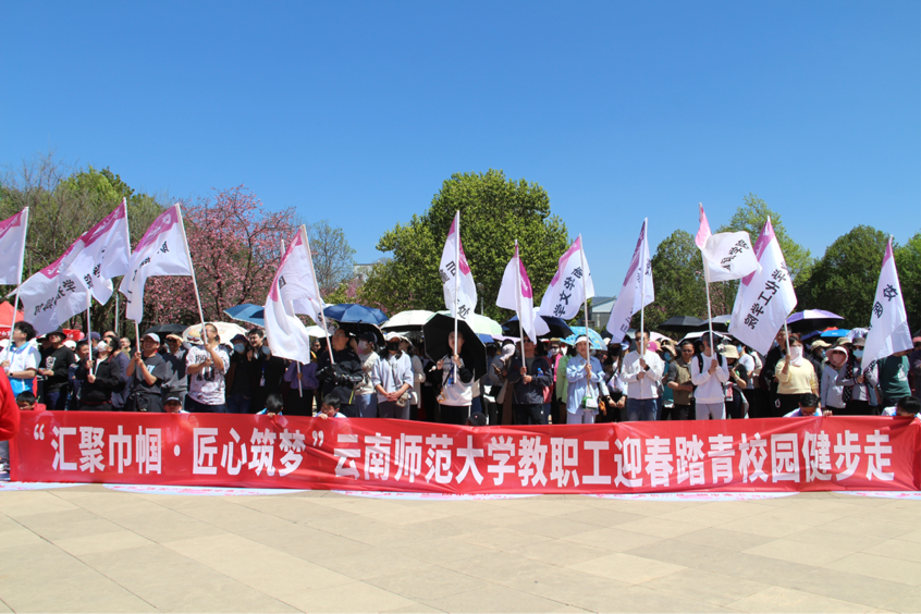 阳春三月,正是踏青好时节。春日的云师校园里,处处花团锦簇,春意盎然。在“迎春踏青校园健步走”活动中,kaiyun官网教职工们精神饱满、兴致浓浓,迈着轻快的步伐走在校园的林荫道上,一同欣赏烂漫的校园风光。