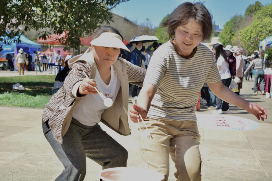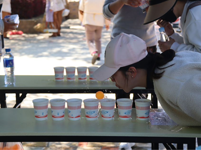 “快快快,加速,马上就完成了!”“加油,稳住。”……激动的欢呼声充斥在“筷”乐大搬家、水中捞月、好运连珠等活动现场。参赛选手们一边努力寻找游戏通关技巧,一边和身后还未参赛的选手传授自己的经验、心得。围观师生也不停地为参赛人员呐喊、助威。