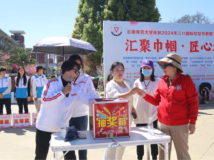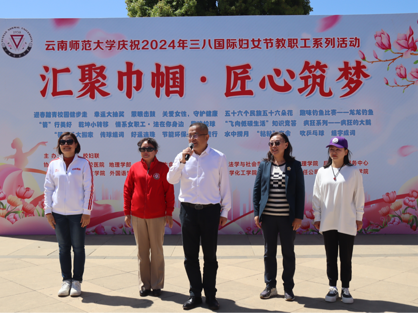 3月7日,由校工会、校妇联主办,各二级部门工会协办的“汇聚巾帼·匠心筑梦”庆祝“三八”国际劳动妇女节教职工系列活动在呈贡校区红烛广场开展。校党委书记张祖武,副校长、校妇联主席郝淑美以及全校女职工、部分男职工代表参加了活动。