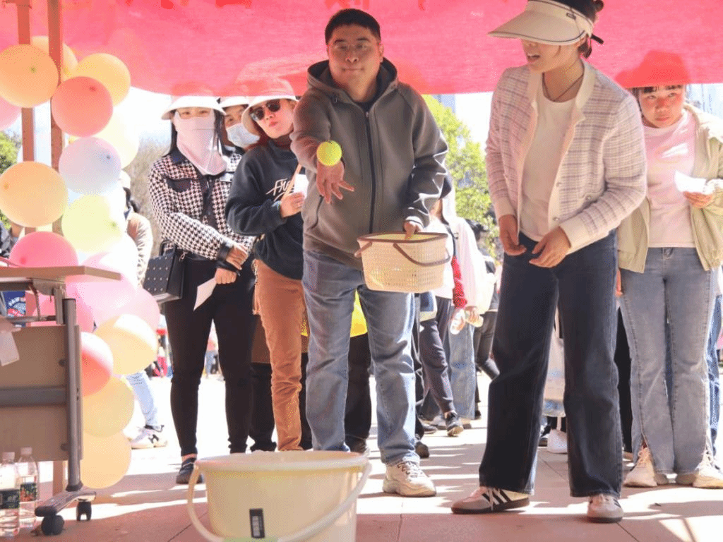 在趣味游园活动现场,掌声、笑声、欢呼声此起彼伏,气氛热烈。“五十六个民族五十六朵花”民族卡识别、“组字成词”、趣味投球、水中捞月、“粘粘”有余、好运连珠、乾坤小转移等近20个各具特色的活动有序开展。女教职工们分别选择自己喜爱和擅长的项目参与其中,在繁忙的工作之余放松了身心,锻炼了身体。部分男教职工也积极参与到活动中,分享着节日的喜悦与快乐。