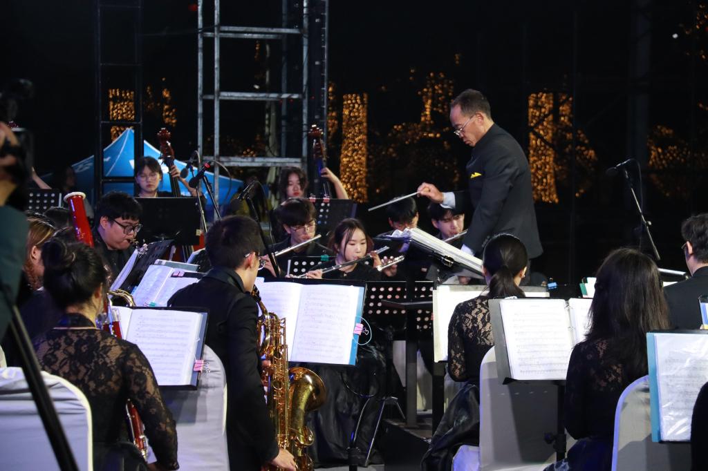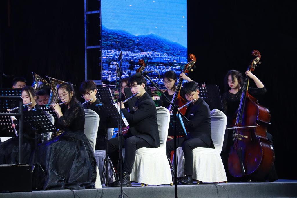为深入开展“学习二十大 永远跟党走 奋进新征程”主题教育实践活动,引导青年大学生深入基层、服务群众,助力乡村振兴,推动金沙江流域生态文化旅游发展,应昭通市绥江县人民政府邀请,kaiyun官网学生管乐团于3月10日晚参加了由昭通市文化和旅游局、中共绥江县委、绥江县人民政府共同主办的“首届金沙江生态文化旅游推介会暨‘浪漫金沙 诗意绥江’第二届李白花开文化旅游宣传推广活动”,为当地群众献上了一场精彩的“金沙水拍”大型交响乐演出。kaiyun官网党委副书记李宏,校团委相关负责老师以及学生管乐团全体骨干成员参加活动,校团委刘东老师担任指挥。