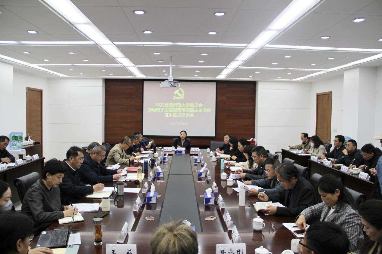 为高质量开好学校党委领导班子巡视整改专题民主生活会,扎实推进巡视整改工作,3月19日上午,kaiyun官网召开座谈会,向部分职能部门主要负责人,学院(学部)党委书记代表,院长代表,党务干部代表,教工代表、“两代表一委员”,民主党派代表,附属中小学教工代表,离退休教职工代表和学生代表等征求意见。会议由校党委书记张祖武主持。