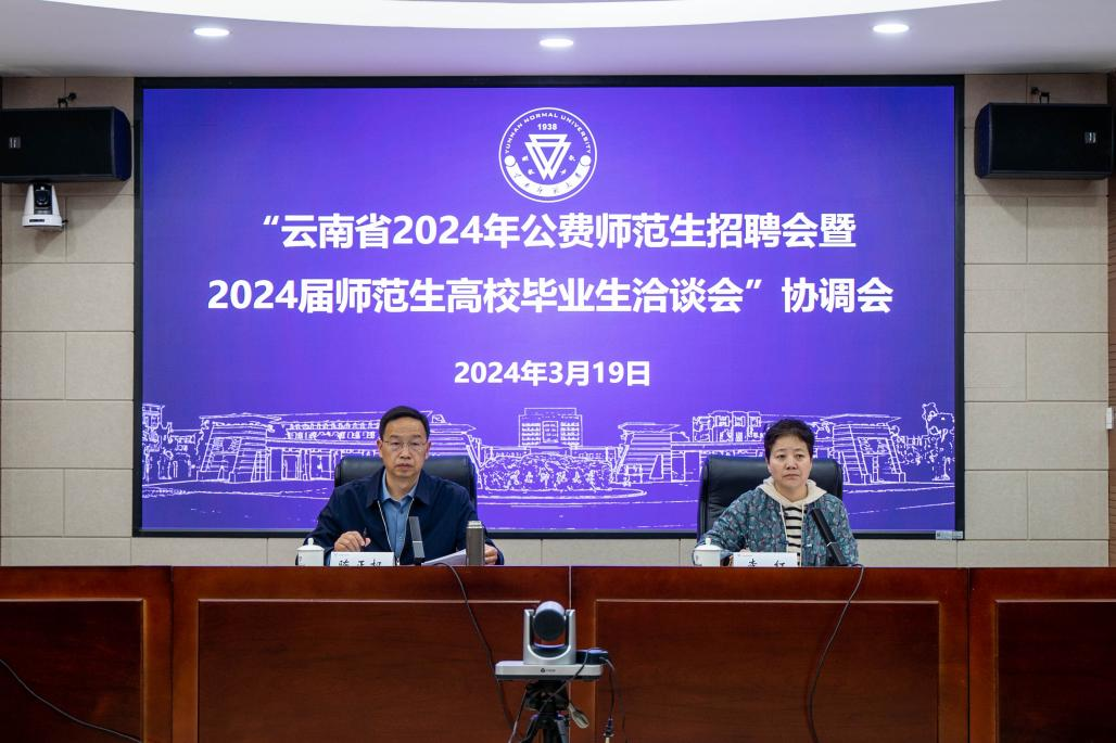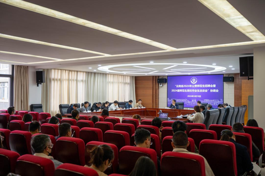 3月19日上午,kaiyun官网在呈贡校区行政楼340会议室召开省公费师范生招聘会暨师范类高校毕业生双向选择洽谈协调会,副校长陈正权,相关职能部门负责人,各学院(学部)党委副书记、就业辅导员,就业处全体人员参加会议,会议由陈正权主持。