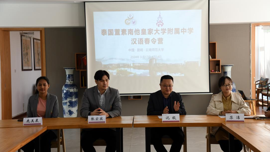 3月18日上午,泰国萱素南他皇家大学附属中学汉语春令营开营仪式在kaiyuncom官方网站呈贡校区国际汉语教育学院举行。汉语国际推广师资培训基地(昆明)常务副主任沈毅,泰方领队教师张宏宾、鹿美晨,24名泰国高中学生参加了开营仪式。