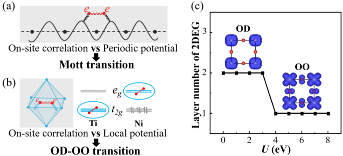 自2009年实验上首次发现钙钛矿界面处电子气的反常晶体场劈裂现象以来,学界对其背后的机理众说纷纭,莫衷一是,并长期存在各种误解。付召明等对这一反常晶体场劈裂现象进行了两年多的探索和研究,最终发现该反常现象背后隐藏着复杂且有趣的物理机制。他们对该现象给出了一个全新的解释, 解决了一个15年来悬而未决的问题。该解释把这种反常的晶体场劈裂归结为局域势与电子关联竞争所导致的轨道相变,与著名的莫特相变具有可比性,其理由是莫特相变可理解为周期势与电子关联竞争所致。