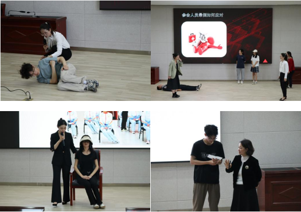 培训中,赵珂熳引导同学们深入思考志愿者的内涵、意义和重要价值,重点讲解了志愿服务工作的方法与技巧,进一步培养了同学们的担当意识、奉献精神。段艳明讲解了志愿服务过程中可能出现的各种突发事件和应对方法,以现场互动的方式向志愿者们传授自救知识,帮助大家高效、规范、安全地完成志愿服务工作。覃琳琳强调了外在形象对志愿者及志愿活动的重要意义,从衣着、坐姿、表情管理等方面作了详细示范和说明,帮助志愿者们在服务过程中展现出良好青年风貌。顾云芬通过“多人传话”、“你说我画”等互动游戏,与现场的志愿者进行情景对话模拟,有效提升了同学们的沟通技巧与协作能力。