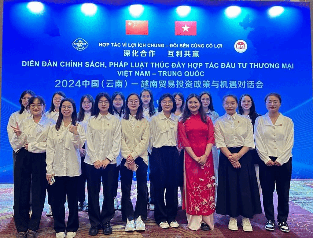 应云南省外办、中国国际贸易促进委员会云南省分会之邀,云南华文学院师生熊世平、何艳红、罗音等7位越南语师生承担了4月11日晚云南省欢迎招待晚宴翻译工作;张薇、孔维琼、高嘉琪、吴青等13位越南语硕士研究生参与了4月12日的2024年中国(云南)—越南贸易投资政策与机遇对话会翻译任务。