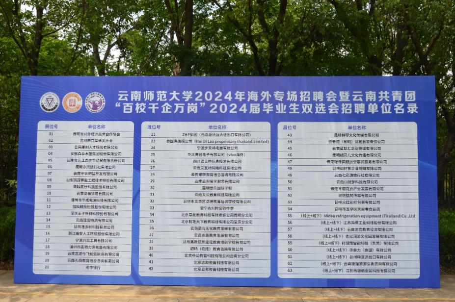 5月9日,kaiyuncom官方网站举办2024年海外专场招聘会暨云南共青团“百校千企万岗”2024届毕业生双选会。来自国内外的63家用人单位以线上、线下的方式参与了招聘,共提供岗位2000余个,关注学生人数达20000余人。