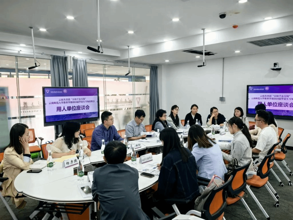 招聘会期间,教育学部组织召开了用人单位座谈会。甘健侯,创新创业学院副主任李映松,教育学部相关负责人,德宏州幼儿园、昆明市西山区第七幼儿园、云南淳元教育科技有限公司等10家招聘单位代表参会。座谈会上,学校和用人单位就学生创新创业、专业素养提升、毕业生职业发展、校校合作、校企合作等进行了交流。双方表示,将充分发挥各自优势,资源共享、优势互补,为推动毕业生充分就业作出应有的贡献。