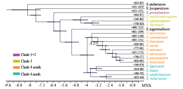 图2 S. commersonii 和其他茄属物种之间基因家族进化的系统发育和演化