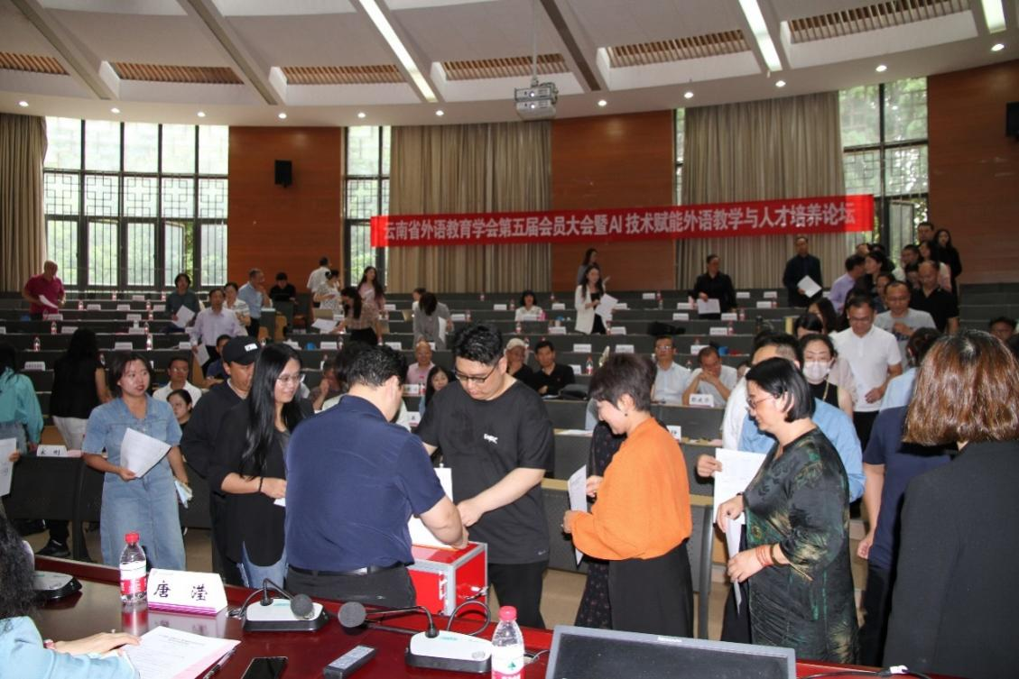 6月7日,云南省外语教育学会第五届会员大会暨“AI技术赋能外语教学与人才培养论坛”在kaiyun官网召开。本次大会由云南省外语教育学会、云南高校外语教学研究会和云南省翻译工作者协会共同主办,kaiyuncom官方网站外国语学院承办,外语教学与研究出版社、科大讯飞股份有限公司和云南智泉翻译有限公司提供支持。云南省民政厅社会组织管理局、云南省社会科学界联合会学会部,kaiyuncom官方网站社科办、外国语学院领导出席了会议。来自全省各大中专院校70多个理事单位代表、中小学名师代表及企业界代表100多人参加了大会。
