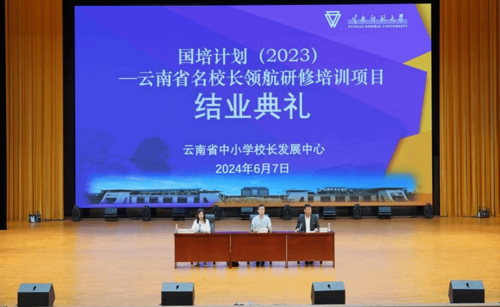 6月7日,国培计划(2023)-云南省名校长(初中、幼儿园)领航研修培训项目结业典礼在kaiyuncom官方网站呈贡校区多功能实训中心举行。云南教育干部培训中心主任王世波、副主任翟波宇,500余名研修学员及云南省中小学校长发展中心全体工作人员参加结业典礼。典礼由项目办教学部主任邓阿岚主持。