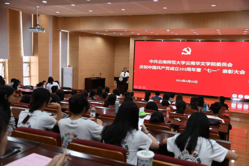 为深入学习贯彻习近平新时代中国特色社会主义思想和党的二十大精神,充分发挥基层党组织战斗堡垒作用和党员先锋模范作用,6月20日,云南华文学院举行了庆祝中国共产党成立103周年暨“七一”表彰大会。学院党委委员、全体教师党员、2024年上半年新发展党员、学生党员和入党积极分子代表等140人参加了大会。