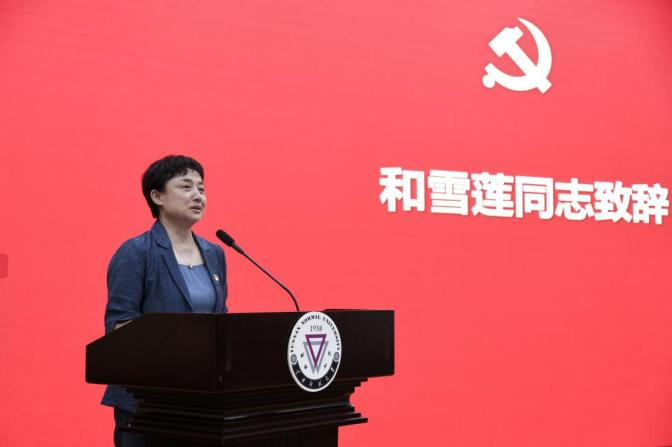 最后,学院党委书记和雪莲同志在讲话中代表学院党委对全院师生党员提出三点希望:一是坚定信念,牢记入党誓词,深入学习贯彻习近平新时代中国特色社会主义思想。二是践行宗旨,赓续红色血脉,大力弘扬党的光荣传统和优良作风。三是拼搏奉献,坚守初心使命,为推进学院高质量发展提供坚强政治保障。全体党员同志要不忘初心、牢记使命,埋头苦干、接续奋斗,在新时代“赶考”路上交出合格答卷,为加快建设教育强省、教育强国,全面建设社会主义现代化国家作出新的更大贡献。