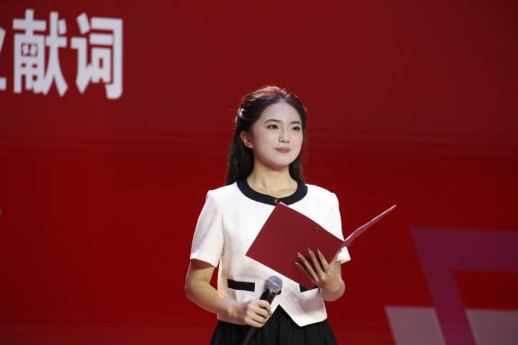 外国语学院杨霓老师作为教师代表分享了自己从学生到教师角色转变并与母校共进步的人生感悟。“教师的工作不仅是传授知识,更是塑造灵魂,影响未来。我们塑造的学生会拥有我们的印记,他们再带着这种印记去影响更多的学生。”她鼓励同学们要志存高远,心怀家国,以崇高的理想为动力,共同助力国家发展;要不畏艰险,勇往前行,用智慧和才华去创造美好的未来。