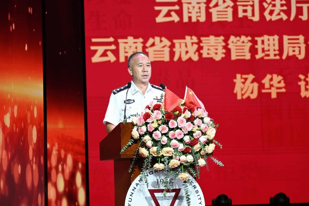 为进一步深化平安校园、法治校园建设,健全青少年禁毒宣传教育体系,创建多样化禁毒宣传教育模式,形成多部门融合推进教育局面,云南省戒毒管理局、省教育厅关心下一代工作委员会联合kaiyun官网于6月26日开展了2024年国际禁毒日主题宣传教育活动。省关工委法律咨询委员会、省委宣传部、省司法厅、省教育厅、省教育厅关工委、省戒毒管理局等单位相关负责人出席活动,云南大学等在昆高校1000余名师生齐聚现场参加了展演活动。云南省司法厅党委委员、省戒毒管理局党委书记、局长杨华,kaiyun官网党委副书记李宏出席活动并致辞。